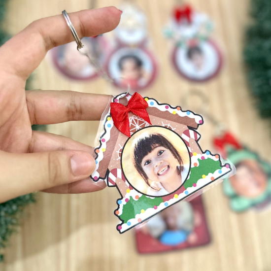 Arquivos com 6 modelos de chaveiros tema Natal, com opção de personalizar com a foto da criança. Ótima opção de lembrancinha para o final de ano.