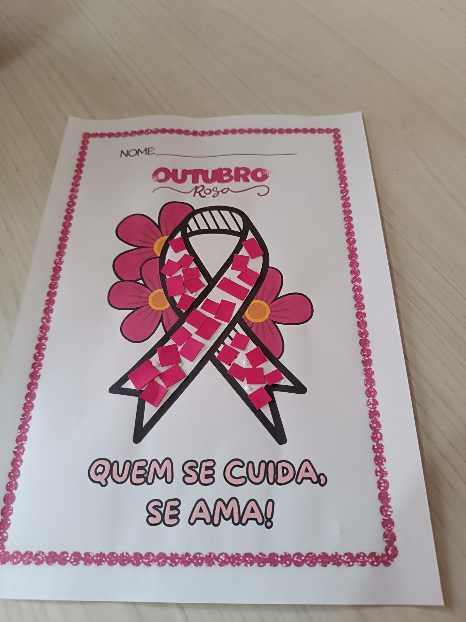 Atividade outubro rosa para crianças de 3 a 6 anos.